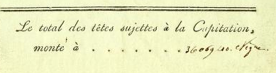 Le total des têtes sujettes à la Capitation, monté à………. 36069 Nègre [Total number subject to Taxation, now at………. 36069 Blacks]