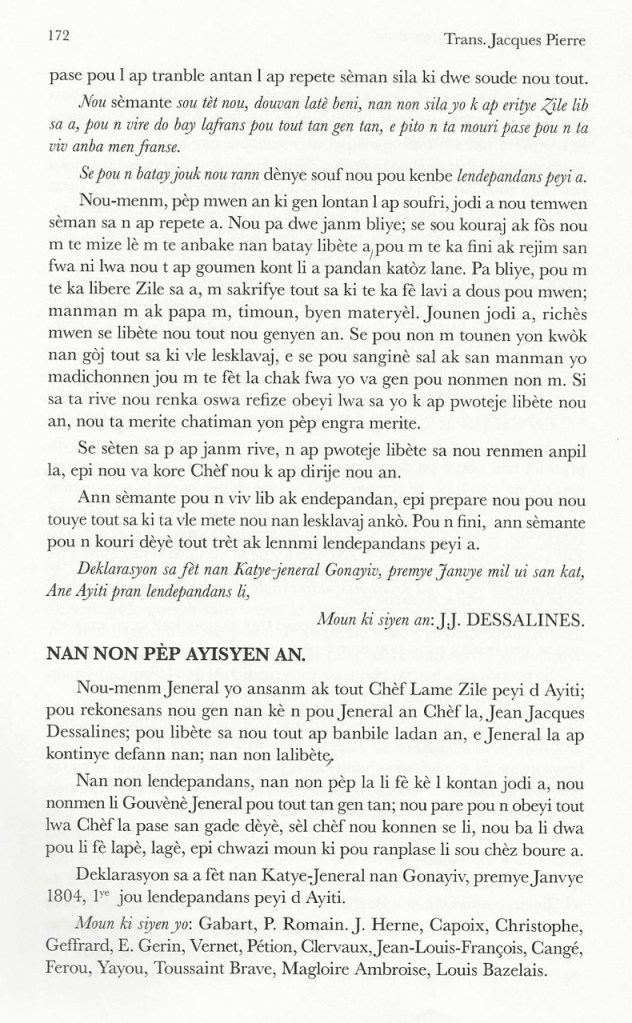 Traduction de L%27acte de l%27indépendance d%27Haïti en créole Haïtie_4 Published January 11, 2016 at 790 × 1279 in Swa Nou Viv Lib Swa Nou Mouri, Jacques Pierre’s translation of the DOI