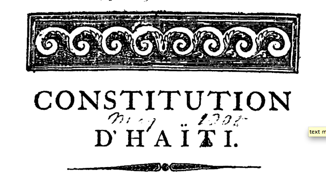 Screen Shot 2013-09-29 at 1.41.34 PM Published September 29, 2013 at 653 × 359 in Haitian Constitutions 1790-1860 Dessalines’s 1805 Constitution, original held at the American Philosophical Society, Philadelphia