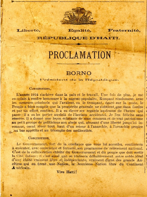 Institutionalized in the nineteenth century, the calendar continued even during the first U.S. occupation (1915-1934). Proclamations included in the official newspaper Le Montieur contain the date in Gregorian years and years of independence.