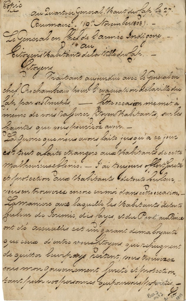 Dessalines Reader, 27 Brumaire/19 November 1803