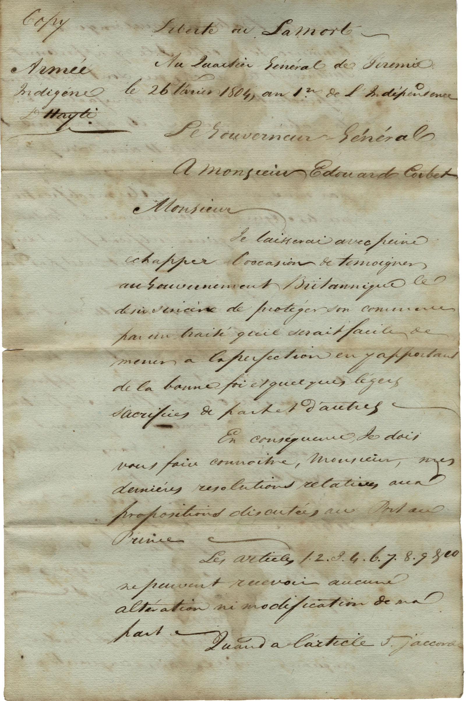 Dessalines Reader, 26 February 1804