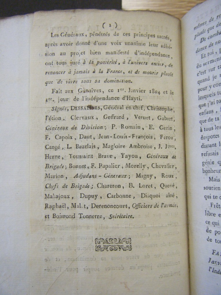 DSCF9737 Published October 28, 2015 at 2736 × 3648 in Dessalines Reader, 1 January 1804 (printed pamphlet)