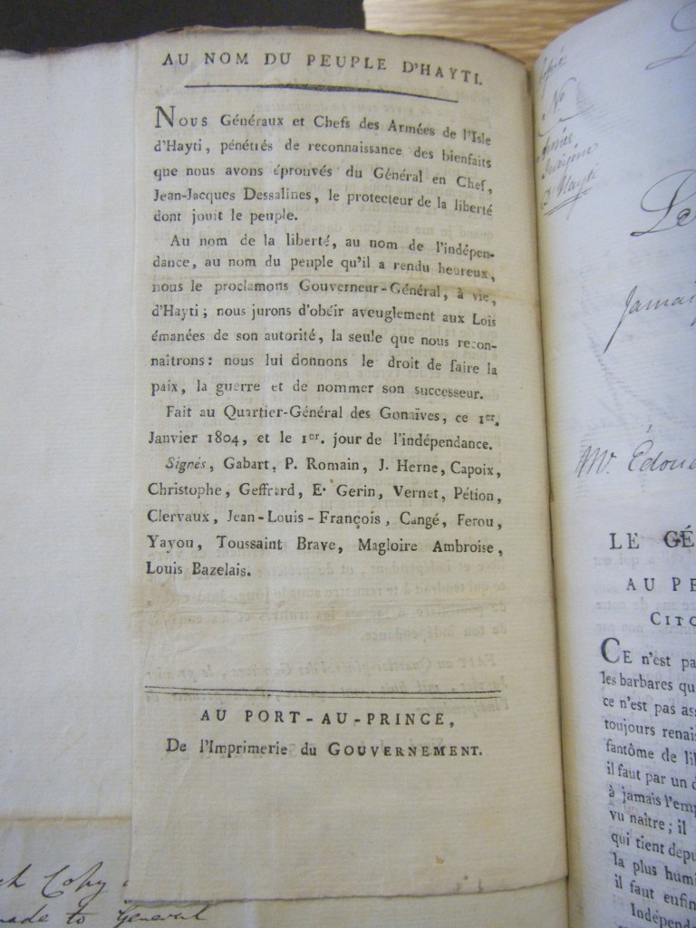 DSCF9739 Published October 28, 2015 at 2736 × 3648 in Dessalines Reader, 1 January 1804 (printed pamphlet)