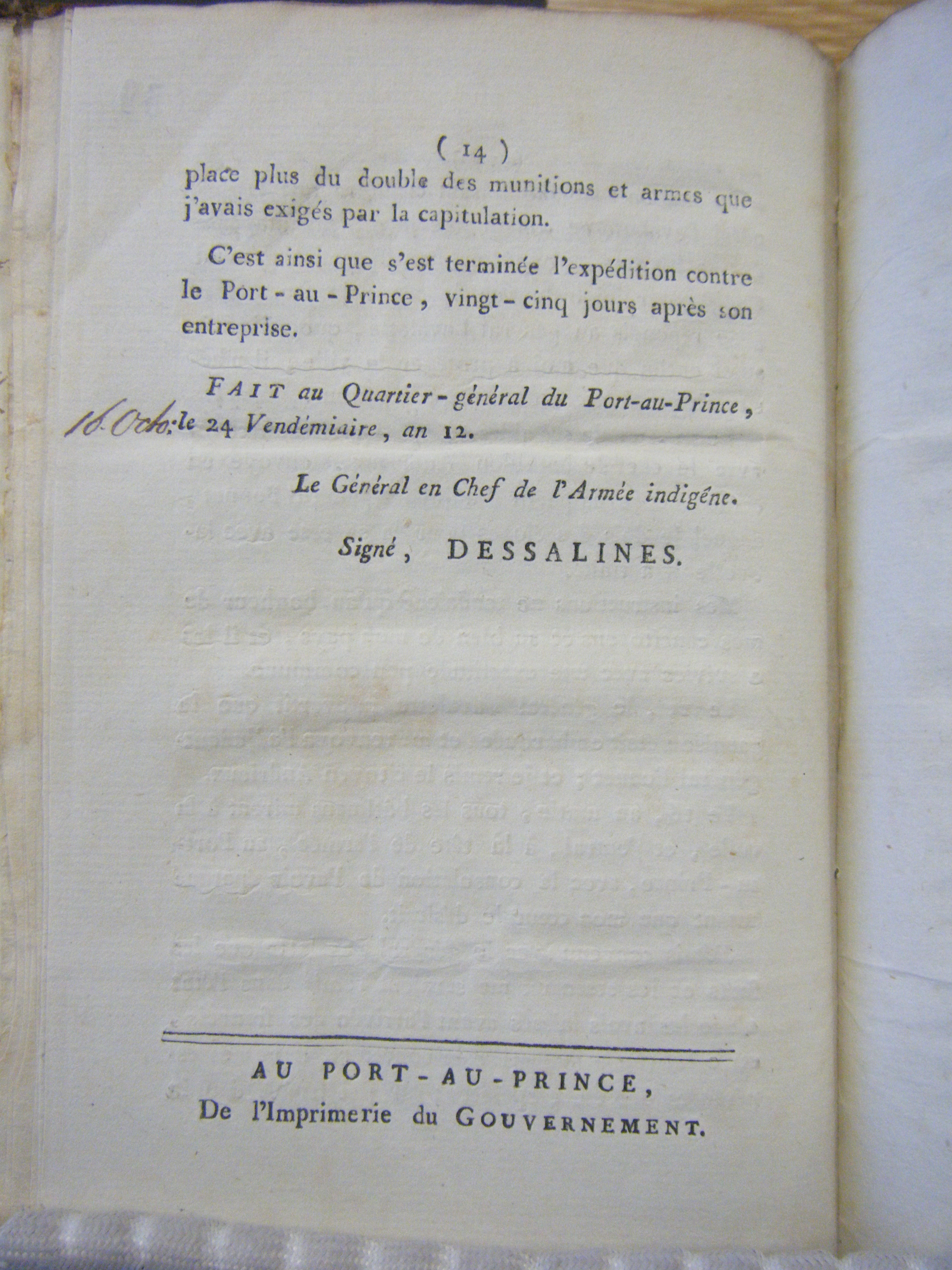 Dessalines Reader, 10 Frimaire, an 12