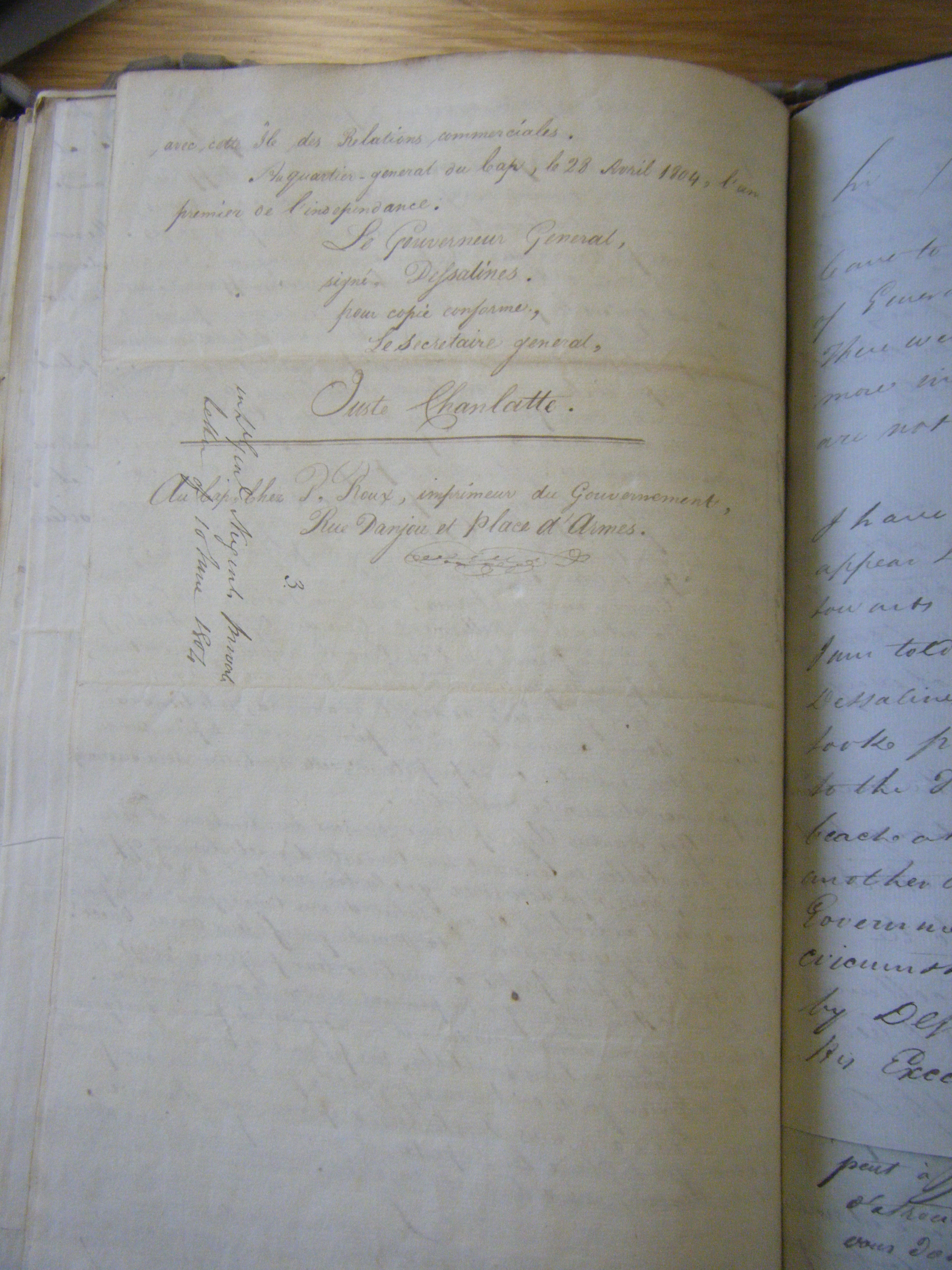 Dessalines Reader, 28 April 1804